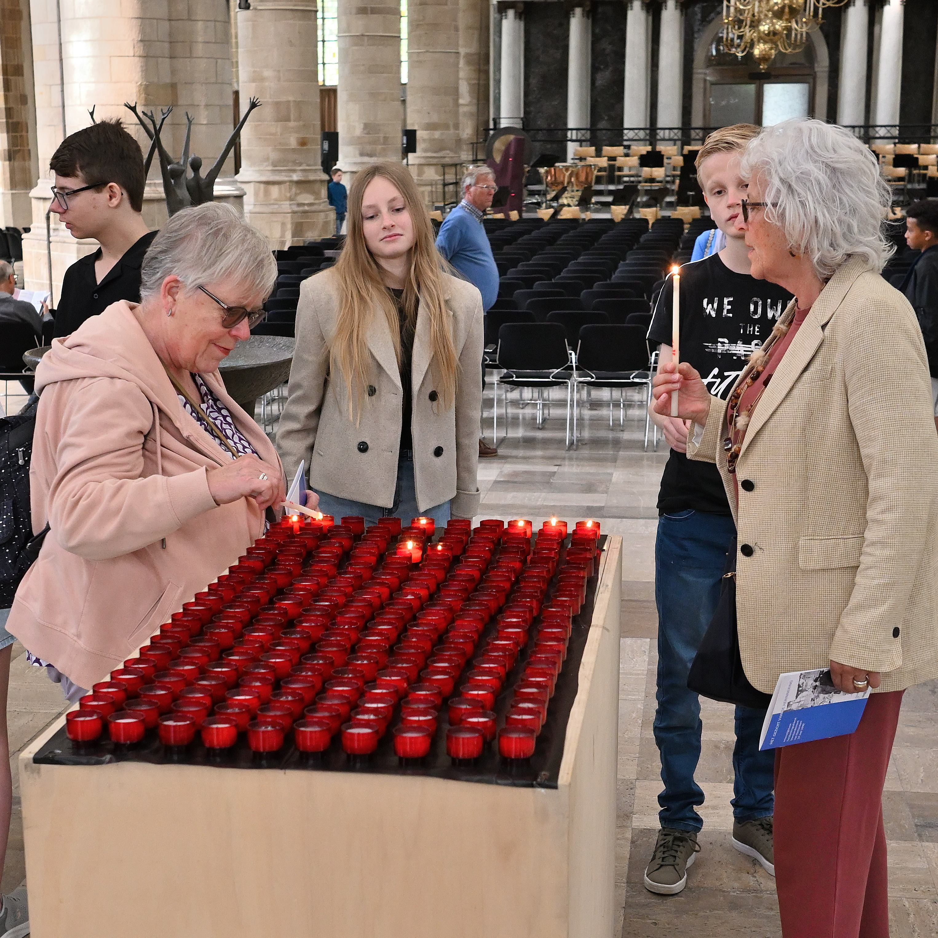 De pijn van het verlies van vele slachtoffers en de verwoeste levens kregen dit jaar ook een stem tijdens de dienst in de Laurenskerk. Leerlingen van het Emmauscollege staken kaarsjes aan voor allen die gestorven zijn rond het bombardement. Tijdens dit moment werd het prachtig verstillende ‘Spiegel im Spiegel’ van Arvo Pärt ten gehore gebracht.